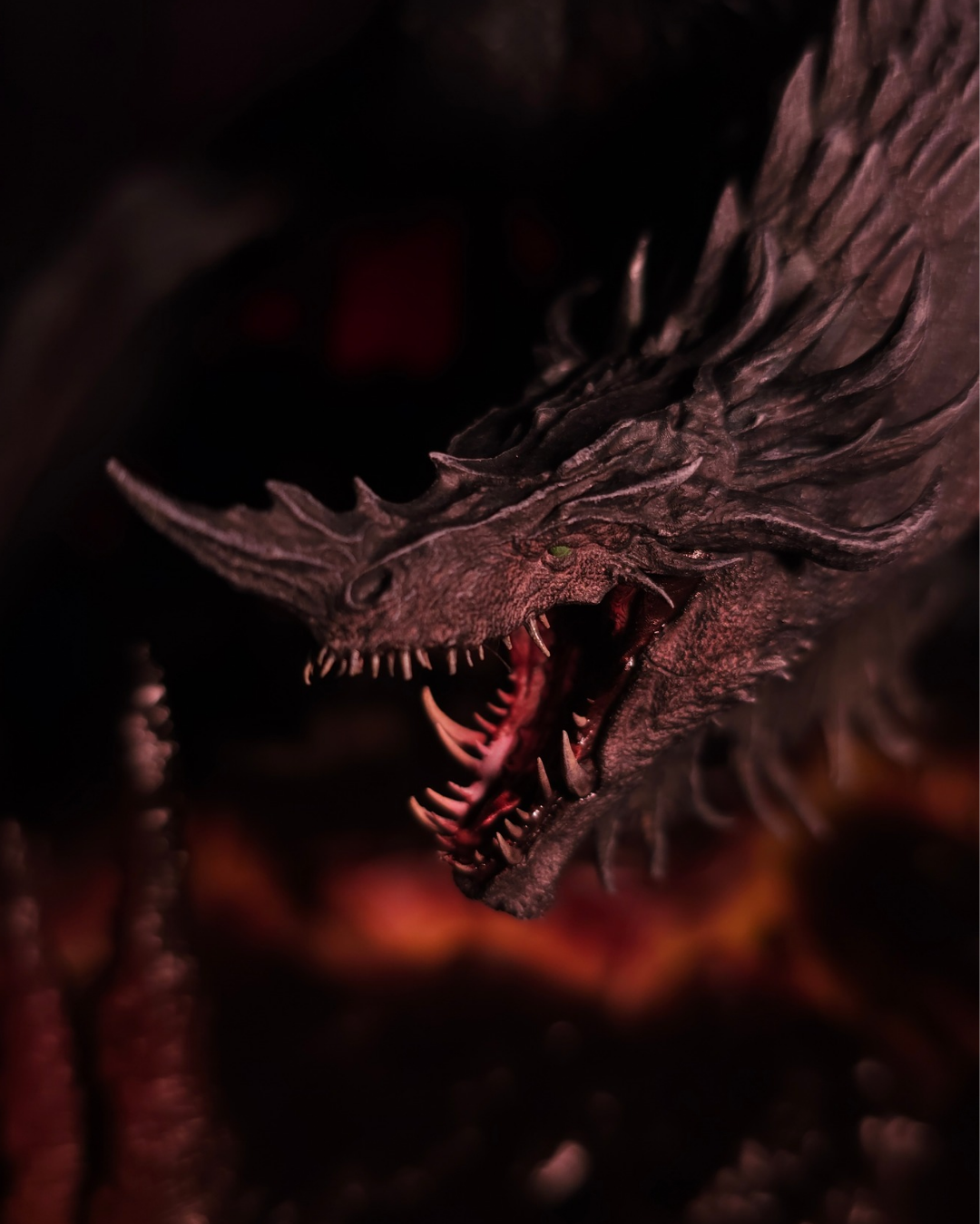 Created using high-precision 3D resin printing by the talented @hive_mind_3d, this figurine features brutal details carved into every scale, every tooth, and every torn claw.