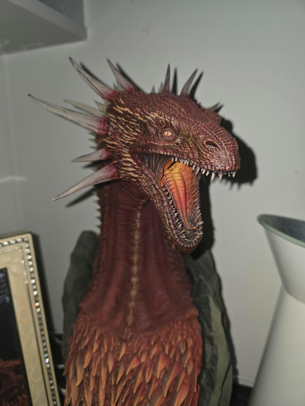 Thanks to a meticulous design inspired directly by the series, the model realistically reproduces the textures, horns, wing membranes, and skin tones characteristic of the young dragon. Every detail has been carefully considered to make this piece a true tribute to the visual universe of Game of Thrones.