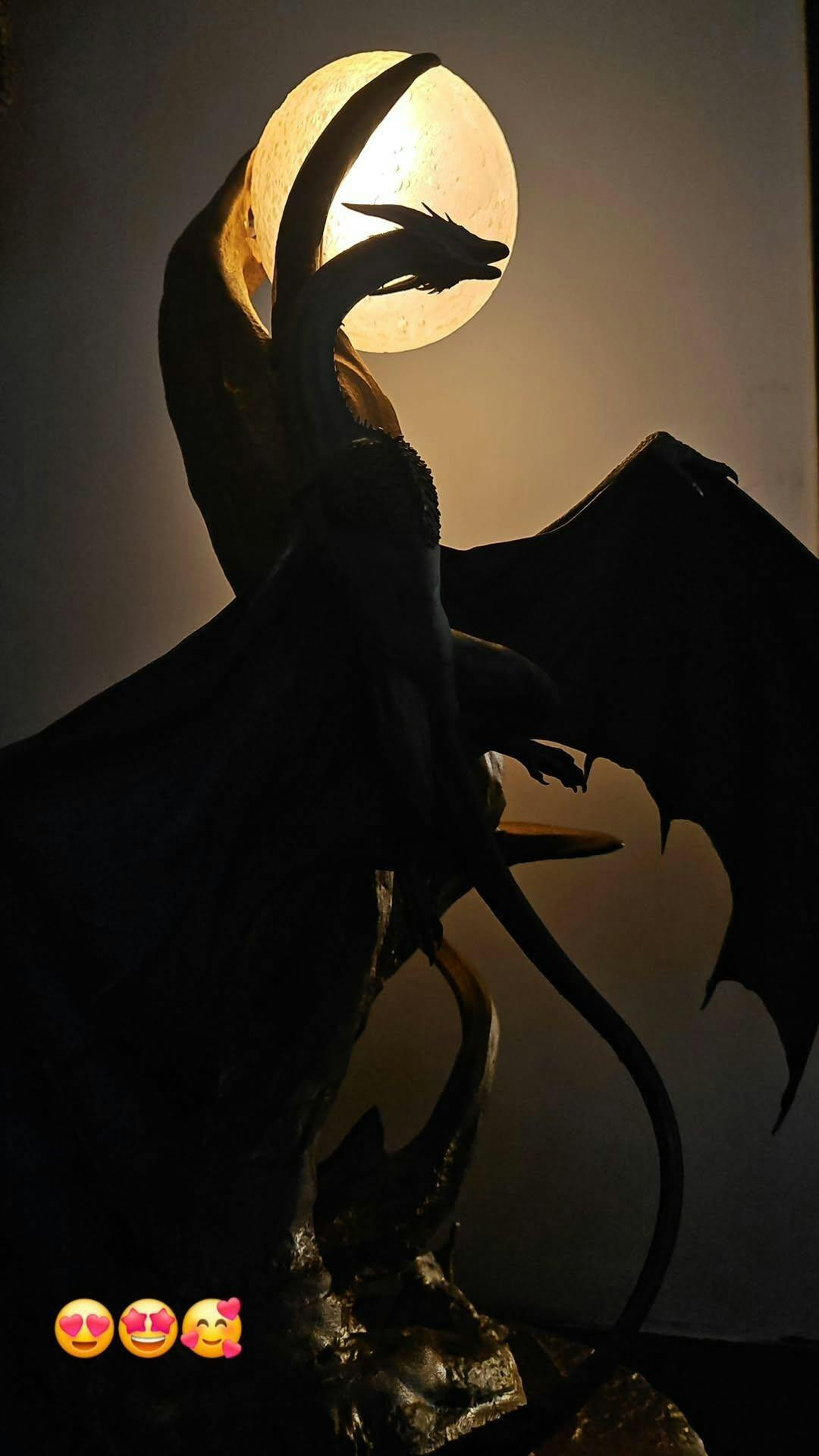 This exceptional figurine depicts the dragon in all its majesty, rising above a flaming base, carried by a glowing sun. The display includes an LED bulb hidden inside the sun, projecting a golden light that illuminates every detail of the dragon's anatomy and creates a spectacular atmosphere.